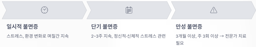 불면증은 지속 기간에 따라 크게 세 가지로 분류할 수 있습니다.