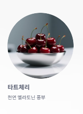 | 타트체리 | 천연 멜라토닌이 풍부하여 수면 주기 조절에 직접적인 도움을 줍니다. |