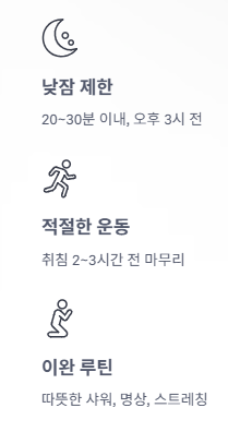 - 일정한 기상 시간, 스마트폰 사용 자제 등 '수면 위생' 습관이 필수적입니다.