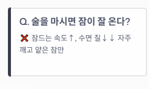 A1. 술은 잠에 드는 속도를 빠르게 할 수 있지만, 수면의 질을 급격히 떨어뜨립니다. 알코올이 분해되면서 수면 중 자주 깨게 만들고 얕은 잠만 자게 하여 다음 날 더 큰 피로감을 유발합니다.