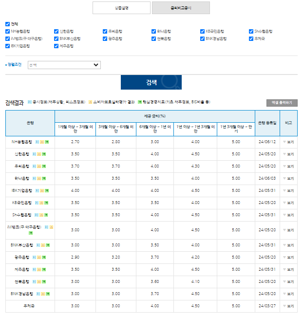 ✅ 전체를 선택하신 후 검색을 누르면 은행 전체의 금리를 확인하실 수 있습니다.
