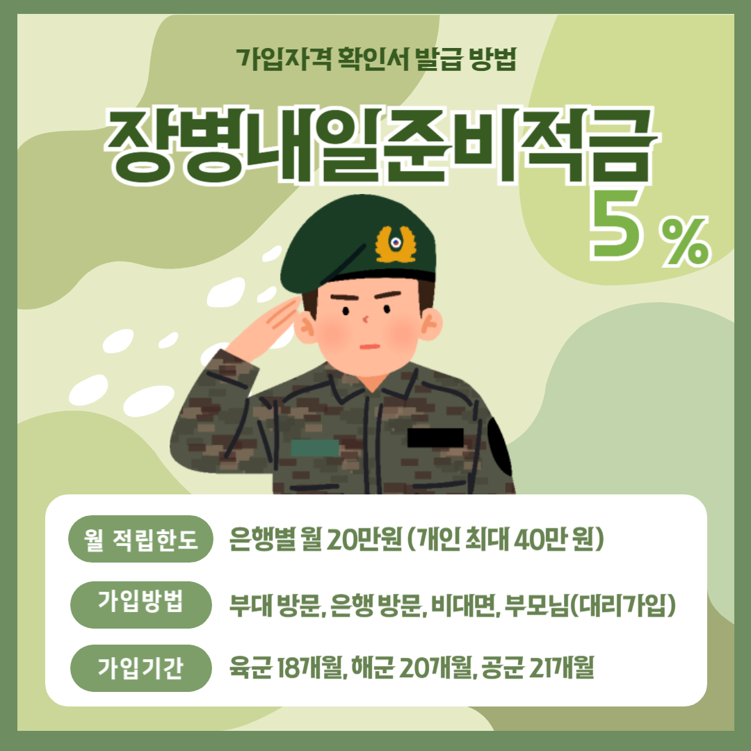 잔여 복무기간이 6개월 1일 이상 남은 분들만 가입 가능합니다. 기초생활수급자의 경우 적금 가입이 불가능할 수 있으므로 주소지 주변 동사무소에서 가능 여부를 확인해야 합니다.