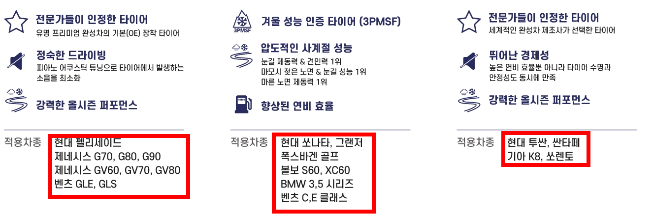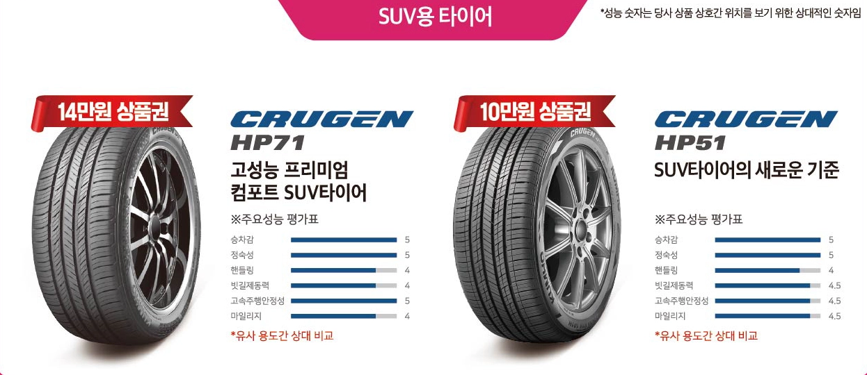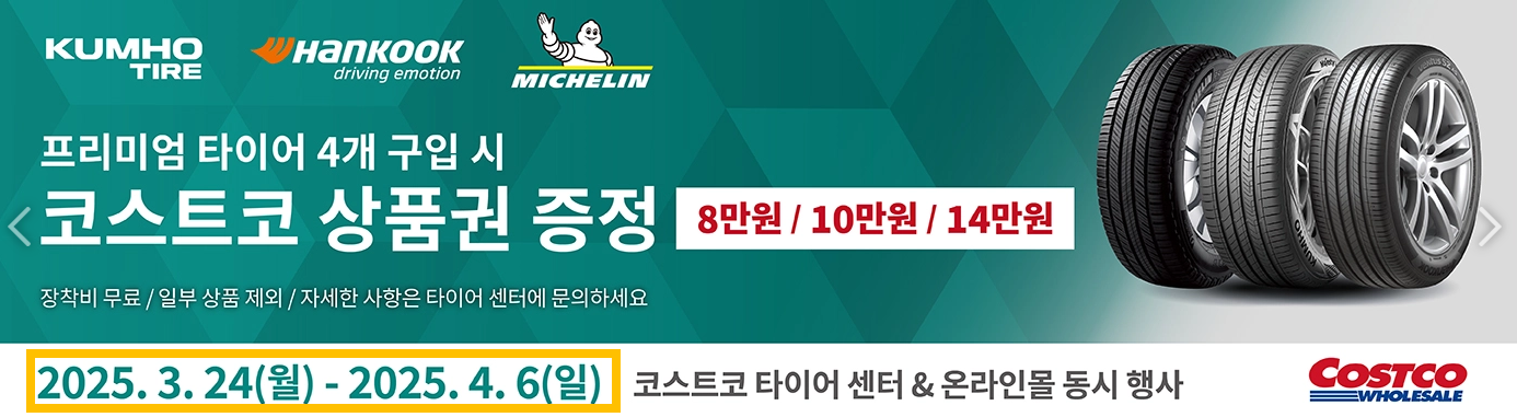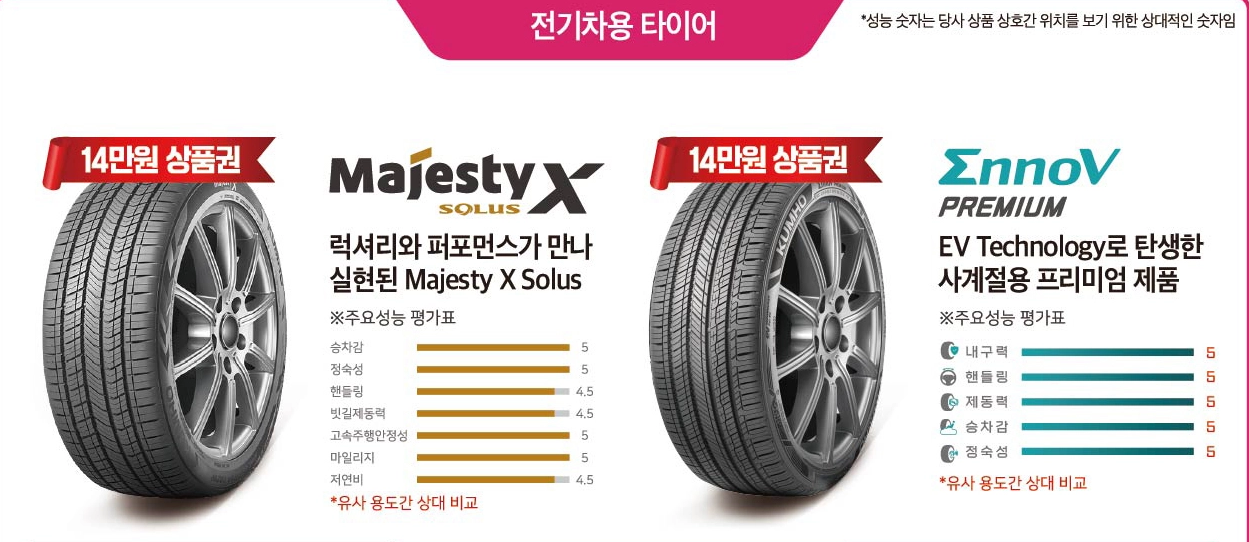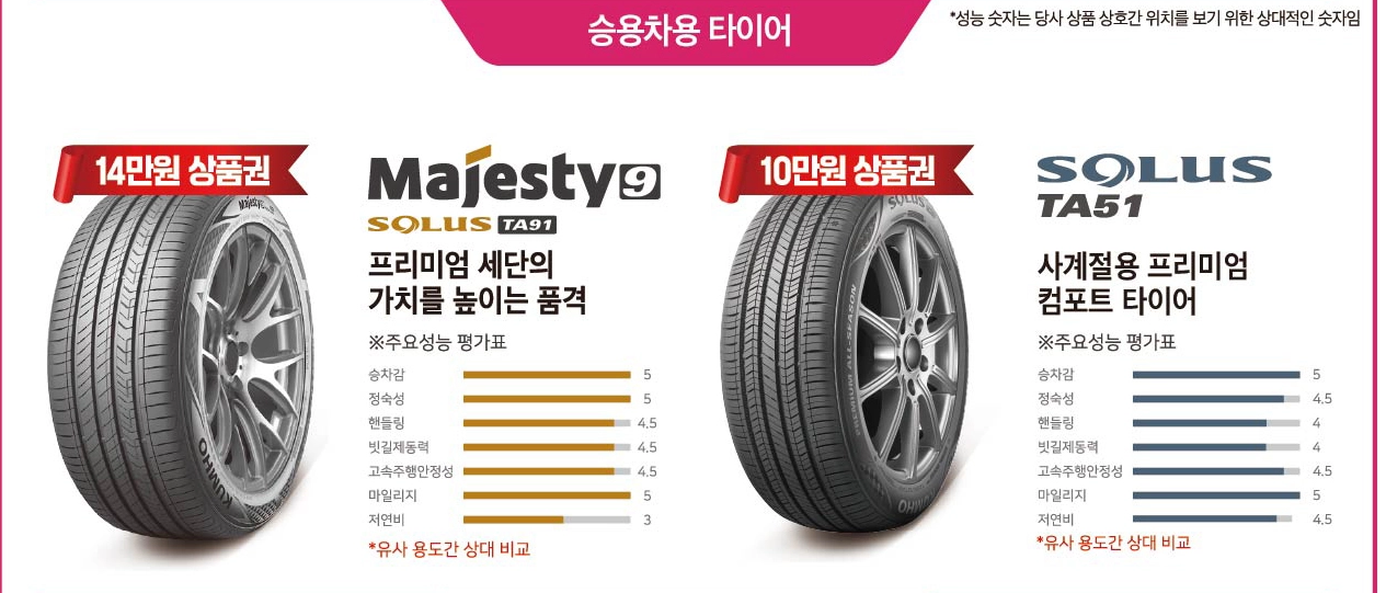 - 대상 브랜드: 한국타이어, 미쉐린, 금호타이어