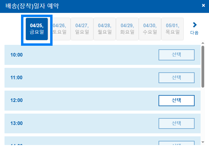 ✅ 현재 가장 빠른 장착일이 4월25일입니다.
