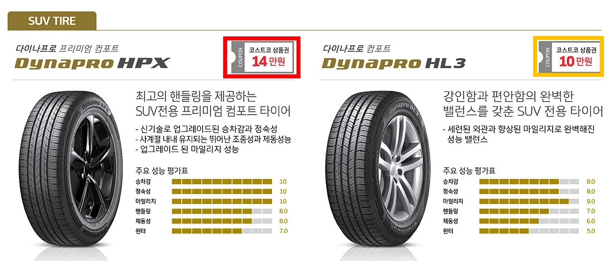 - 한국타이어 4본 구매 시 → 10만 원 상품권
