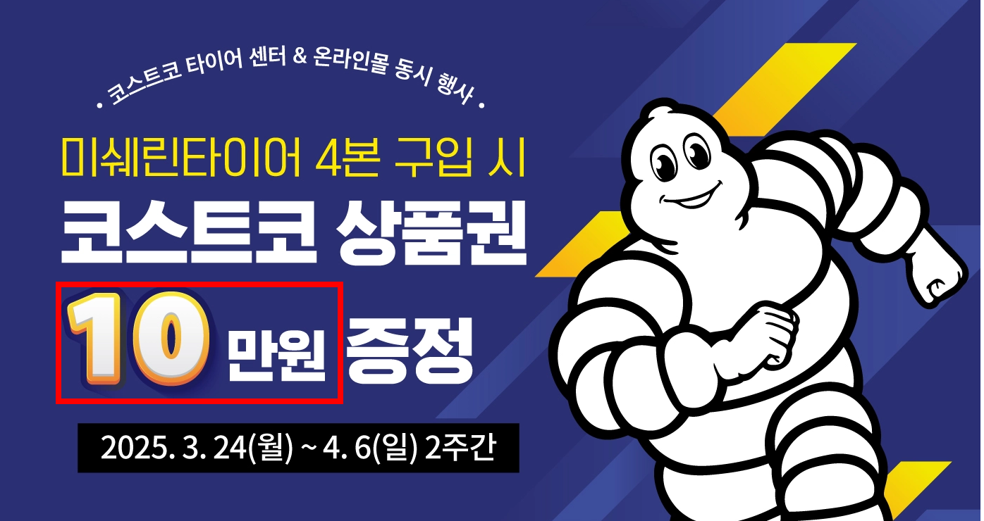 - 미쉐린 타이어 4본 구매 시 → 10만 원 상품권